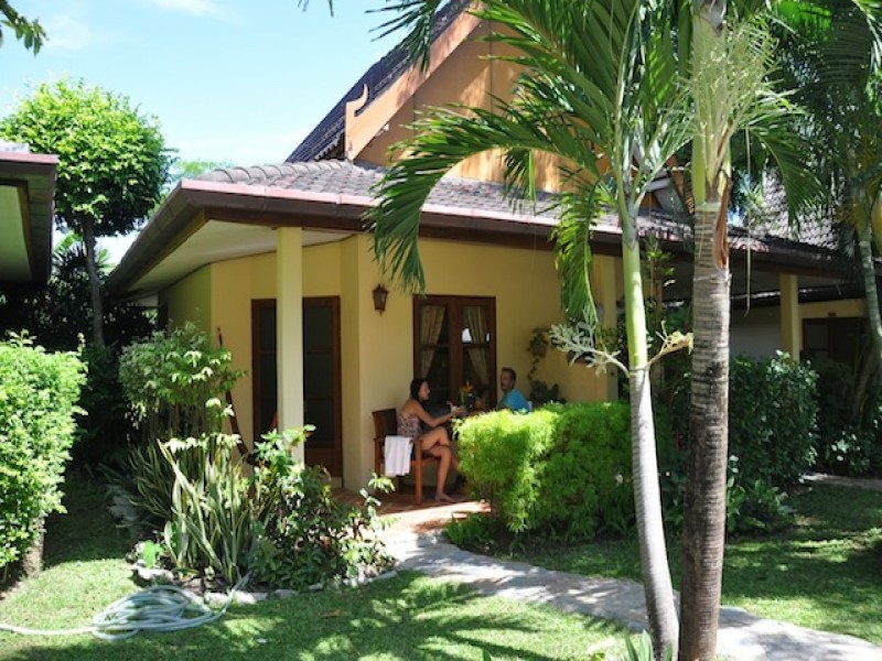 The cottage style Palm Garden Resort, Phuket peacefully lies in a green tropical garden near to Chalong Pier. A wide choice of seafood restaurants, bars and shops can be easily reached by a short wander or for approximately 300 metres from the resort. Within a 5 minute drive are found several large supermarkets including Villa Market, Lotus's Market and Makro. The resort has only bungalow rooms which are spacious, cosy and well furnished. Each bungalow is air-conditioned and fitted with either double or twin bed and comes with all essential amenities. Wireless internet connection is accessible in the room and throughout resort area. There is for a great relaxation while staying here a free-form shaped swimming pool which is surrounded by lush tropical plants. Other additional services that can be found onsite are library, wellness room and bar & restaurant.