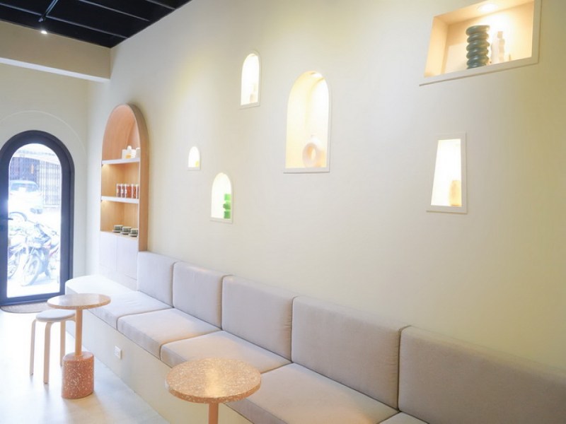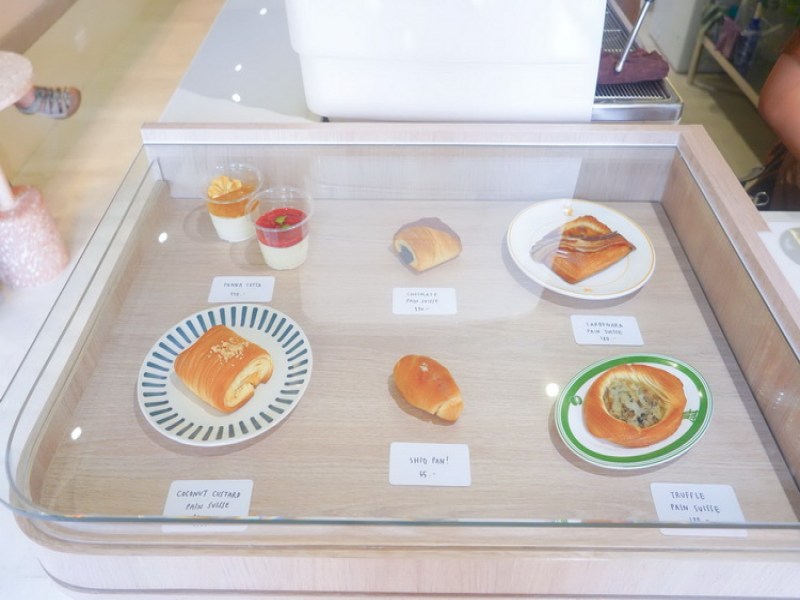 Palme Dessert Bar & Café in Phuket Town blends a warm, earthy-toned minimal style with a relaxed seaside café vibe right in the city. The space is beautifully designed with wooden accents, soft curved white walls, and natural light that makes every corner perfect for photos. Ceramic displays and neatly arranged coffee cups add stylish detail to the cosy atmosphere, evoking a European summer feel. The menu focuses on coconut-based treats and drinks, with signature items served in paper cups printed with the bold “PALME” logo, simple yet distinctive. Their Ameri Conut, a coconut twist on an Americano, pairs perfectly with freshly baked pastries like the Carbonara Pain Suisse and Truffle Pain Suisse. Each drink is thoughtfully prepared by the barista team, who bring both care and friendliness to their service.