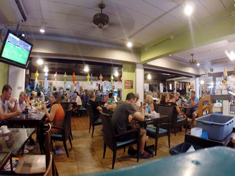 The Patong Corner Restaurant is situated in a quiet area of Rat-U-Thit 200 Pee Road Soi 1, and is part of the My Hotel. Go straight from the main road 200 metres and it is directly opposite the Orange Restaurant, Popa Palace and Gallery Hotel. Popular Bangla Road and the Jungceylon Shopping Complex can be reached by a few minutes walk. It is open for all day breakfasts, lunch and dinner. This part open air, covered restaurant serves Thai and European food and has free wifi.