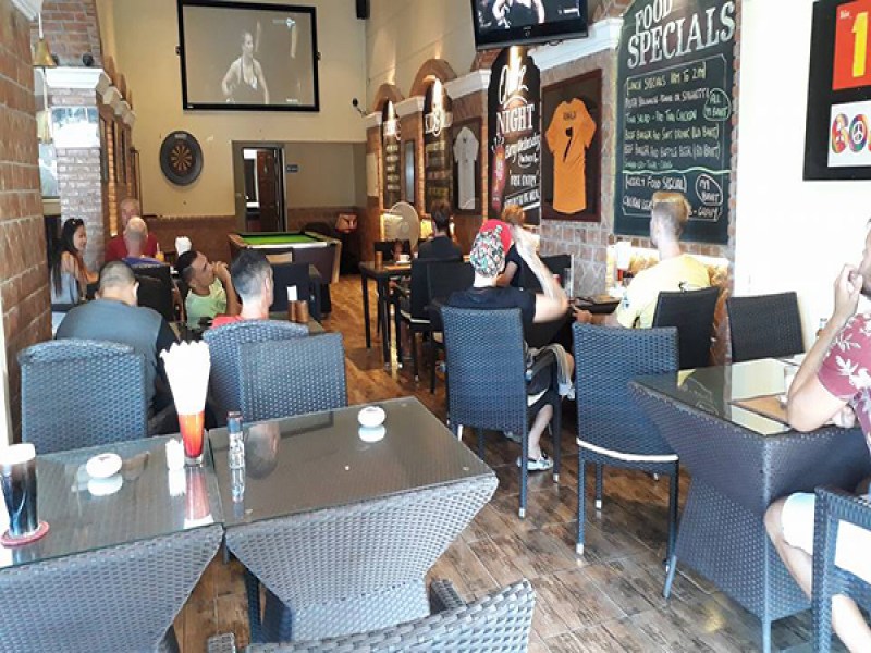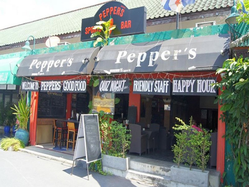 Pepper's Sport Bar Phuket is located in Bangtao, near the entrance to Phuket Laguna on Lagoon Road at Tinlay Place. The bar has two main sections, one section is for dining and the other section is where people sit up at the bar chatting with friends and or watching sport on one of the big sports screens, or play a game of pool. Food is mainly good, solid, hearty pub style, such as sausages and mash served with gravy and onions, meat pie served with mash or chips with baked beans, various generous topping pizzas, pasta, fish and chips served with mushy peas, roast on a Sunday, plus there are Thai dishes and an English Breakfast on the menu. The kitchen is open from 08. 30 - 24. 00 hours. The bar offers a good range of local beers such as Leo, Chang as well as imported beers such as San Miguel, Guinness and Old Speckled Hen Ale. The decor and ambience of Pepper's Sport Bar Phuket is warm and inviting and get their early to get the benefits of their daily happy hour between 16. 00 -20. 00 hours.