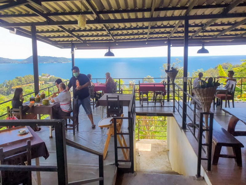 Pha Chom Tawan Restaurant offers a unique dining experience with breathtaking views of the Andaman Sea, serving a variety of local Thai and Phuket specialties in a secluded hilltop location between Kamala and Patong.