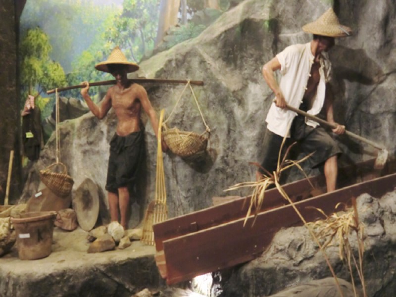 Phuket Mining Museum is located in Kathu, and tells the history of tin mining era of Phuket. It has various sections. The first being about the formation of minerals and structure of the earth, then there is a history of mining section that includes wax figures in caves, plus there is a to scale, model tin mine with small miner figures and small building and tools, the highlight section is a scale mock up of what Phuket Town looked like and the way people lived years ago, it contains shops, and wax figures and last but not least a section containing photos and mineral rocks. The museum has been built in a Sino Portuguese style and has a courtyard that has artifacts dotted around it. The museum is not that large so will not take long to walk around, it is sited on Kathu Koh Kaew Road between Loch Palm Golf Course and the British international School Phuket (BISP).