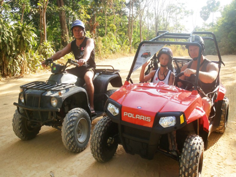 Phuket Paradise Buggy & ATV Adventure offers you a challenging and exciting adventure via ATV and Buggy. You can choose your most suitable engine size whether 150 or 280 cc for ATVs and 150 or 250 cc for buggies. The all terrain fields are designed and created to suit a variety levels of visitors. Beginners can enjoy their easy ride in a special zone while advanced riders can be excited with a very challenging terrain and tracks using up and downhill riding skill. You will be excited with the ride while enjoying the beauty of nature along the track. There are for additional relaxation elephant ride and the shows of monkey picking coconuts and snake show.