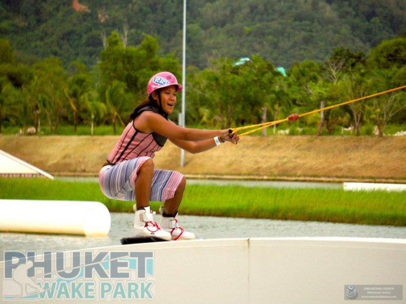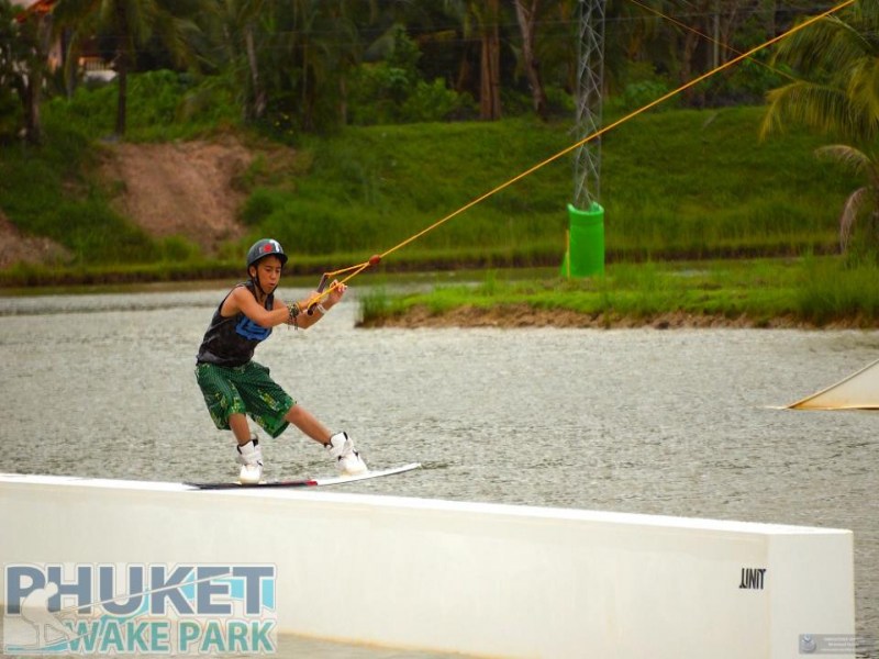 Phuket Wake Park Overview One of Phuket's most interesting attractions, Phuket Wake Park offers a water skiing and wakeboarding activity that is challenging and offers competition between the skier and boarder and him/herself. An exciting ride for the beginner, jumping ramps offer the more professional wakeboarder to test and display skills back flipping and flying through the air. The freshwater lake is 410 metres long, 110 metres wide and 2 metres deep.