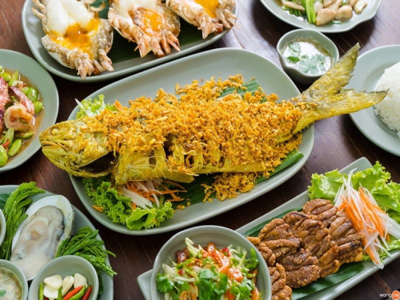 Phunisa Restaurant Phuket specializes in serving a variety of Thai seafood dishes, including Grilled River Shrimps and Crab. Located in Phuket Town, the modern interior features warm-colored walls and light wood furniture.