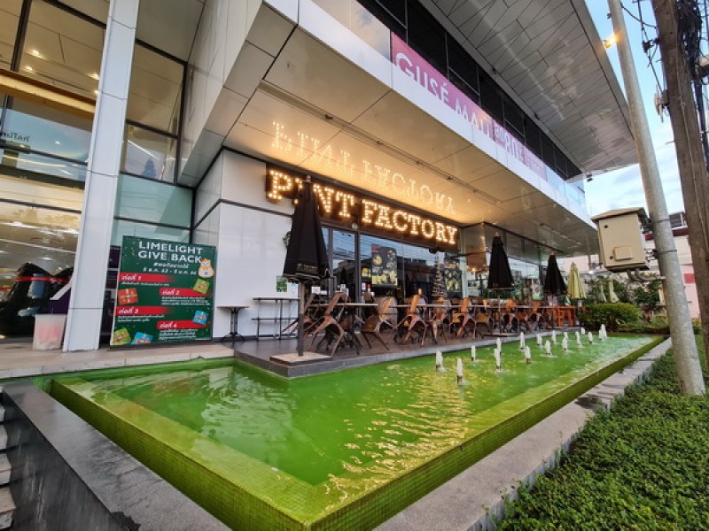 Pint Factory is a Beer Bar and Restaurant, located at the Limelight Avenue Mall in Phuket Town on Dibuk Road. The bar has a good choice of real and imported beers, ales and ciders. Smartly decorated with dark floor tiles, a long wood and metal bar and air conditioning for comfort. Food is also available including various pasta dishes, burgers, fish and chips, chicken wings, steaks and Thai food. Free wifi is provided and often in the evenings they have live acoustic music. A must visit for beer drinkers.