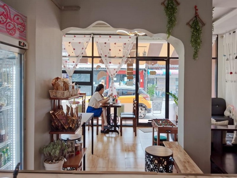 Posh and Pow Club Cafe offers a wide variety of drinks, cakes, cookies, and desserts in a cozy and well-decorated space with a small outdoor terrace. Conveniently located near Rajabhat University in the Ratsada district of Phuket.