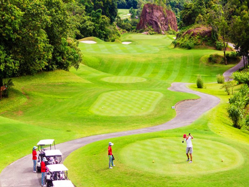 The award winning Red Mountain Golf Club, Phuket is a challenging, yet enjoyable 18 hole, Par 72 course which has been designed by Jonathan Morrow and co-designer Al Tikkanen. It is suitable for all levels of golfers, but some experience is really required. The Red Mountain Golf Club, Phuket has incredible, magnificent scenery and outlooks. Caddies are well trained and experienced, and there are kiosks dotted around the course for purchasing drinks, light snacks such as sandwiches and extra golf balls. Also on site is a Pro Shop which sells golf equipment and clothes as well as offers a club and shoe rental service, changing, locker rooms and there is a Club House which has a Bar and a Restaurant that is open for hearty or light breakfasts and Western and Thai lunch meals. The staff can also help and arrange Corporate and Special Events. Red Mountain Golf Course is in the district of Kathu, next to the shorter, milder Loch Palm Golf Course, off Vichitsongkram Road.