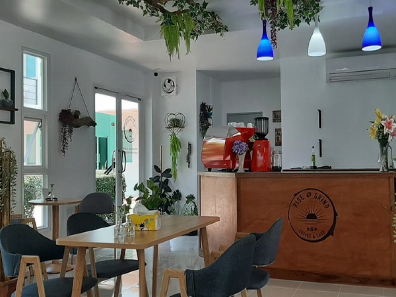 Rise N Grind Coffee and Cake Rawai offers homemade cakes, gluten-free options, and high-quality beverages in a convenient location with access to a swimming pool for a small fee.
