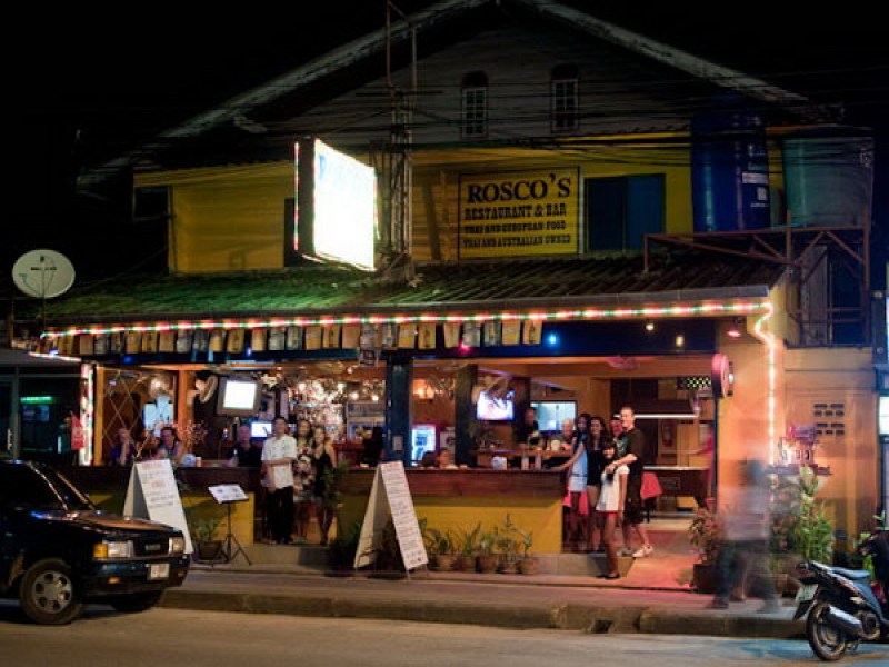 The yellow and green painted, Rosco's Bar & Restaurant is easy to find on Rat-U-Thit 200 Years Road, only 100 meters to the intersection of Ban Sainamyen Municipality School, Patong and a block away from Patong Beach. This friendly place open late morning until around 9. 00 pm. It is an ideal spot for having some cold drinks and a good meal with friends or family. It has free WiFi internet and 3 large screen TVs for football, rugby, tennis, cricket, formula 1 or golf fans.