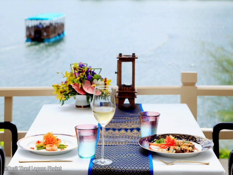 An elegant, traditional look design Thai teakwood house, set in a landscaped garden, The Ruen Thai Restaurant has an air-conditioned dining room and an outdoor terrace space for those preferring romantic al fresco, lovely lagoon and hillside views. Often they have live, soft sound, classical Thai music, which complements the interesting Royal Thai food served, creating a true Thai dining experience. All the fine, not too spicy and non spicy dishes are meticulously prepared, using top ingredients, by the experienced chef and kitchen staff. Chef recommendations include Stir Fried River Prawns, Beef Tenderloin, Curried Soft Shell Crabs and Stir Fried bean Curd with Cashew Nuts for vegetarians. The Ruen Thai Restaurant is set by a lake- lagoon and is one of six eating establishments within the premier, deluxe Dusit Thani Laguna Phuket, which is in the district of Cherngtalay.
