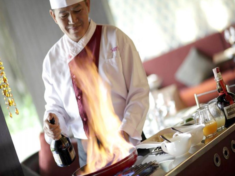 The modern classy, decor steakhouse, Sam's Steaks & Grill is open only in the evening for dinner. It is located inside the Holiday Inn Resort Phuket in Patong, near the lobby area. Here an array of delicacies and European classic dishes are prepared by the professional chef and his team. Waiting staff are well trained and able to offer detailed food and wine advice. As well as mouth-watering steaks there is also lobster, salmon and racks of lamb on the menu, all served with homemade bread. A popular dessert is crepes Suzette with vanilla ice cream, that is prepared and cooked right at your table. The restaurant dress code is smart casual.