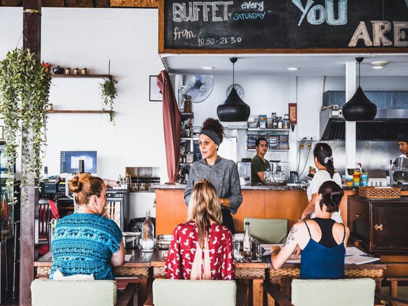 Santosa Vegan Restaurant offers an exciting range of vegan food. Try their cannelloni which is made using cashew nut cheese and pesto, or their gluten free pizzas, pasta dishes or zen bowls. For dessert, they have peanut butter brownies, avocado and lime tart and a vegan cheese board. The restaurant provides a great setting and overlooks dense and green vegetation. To get here from Chalong Circle, head towards the Kata-Karon area, after about a 10 minute drive you will see on the left Soi Kata Buri, which is just before Baan Kata School and Soi Khoktanode. It is part of the Santosa Detox & Wellness Center.