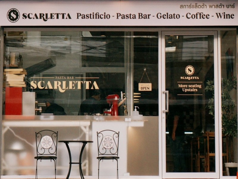Scarletta Pasta Bar in Phuket Town offers signature pasta dishes made with fresh ingredients, artisan cold cuts, and cheeses, along with gelato, coffee, and drinks, providing a full dining experience in a cozy and relaxed setting.