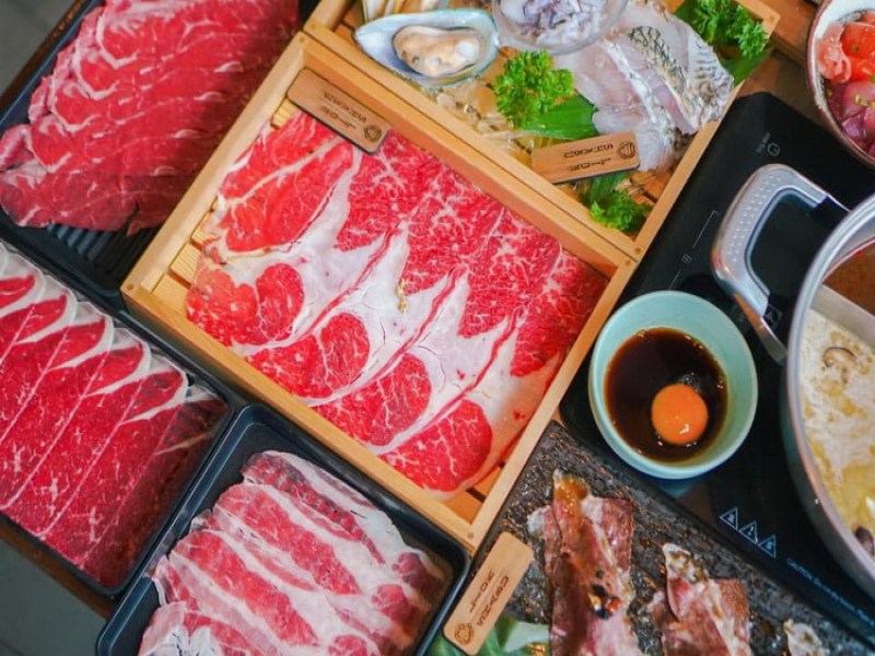 Shabu Lion Restaurant in Phuket Town offers a premium shabu and Japanese buffet with a wide variety of dishes including shabu, hotpot, sushi rolls, and a range of meats and vegetables for Japanese food enthusiasts.