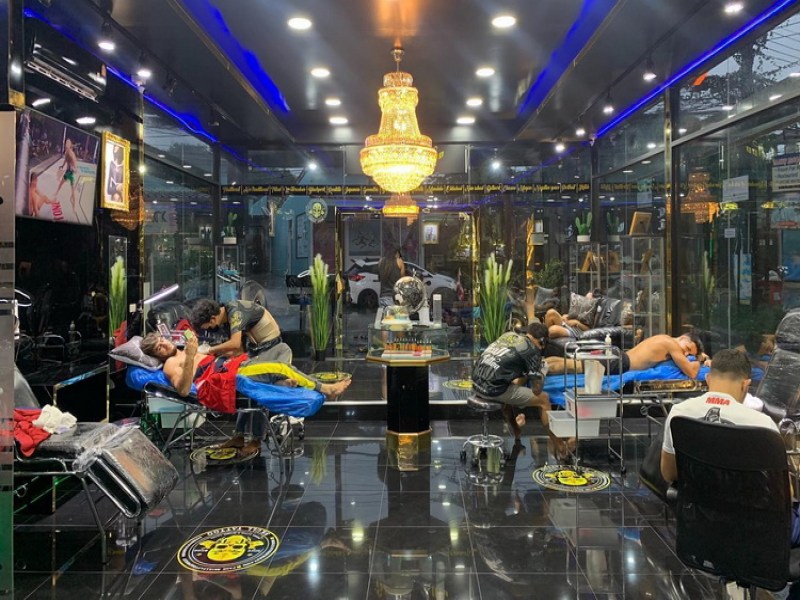 Skull Tattoo Phuket offers professional tattoo and body piercing services with high-quality ink and equipment from the USA, located in the district of Chalong near Titan Fitness Camp.