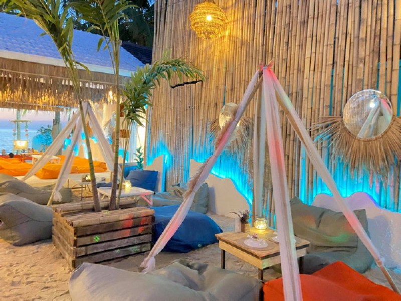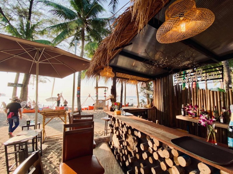 Smile Restaurant offers a variety of Thai food, BBQ meats, fresh seafood, and vegetarian options in a friendly and relaxing beachfront setting. Guests can enjoy cocktails, beer, or wine while sitting on bean bags on the sandy Kamala beach.
