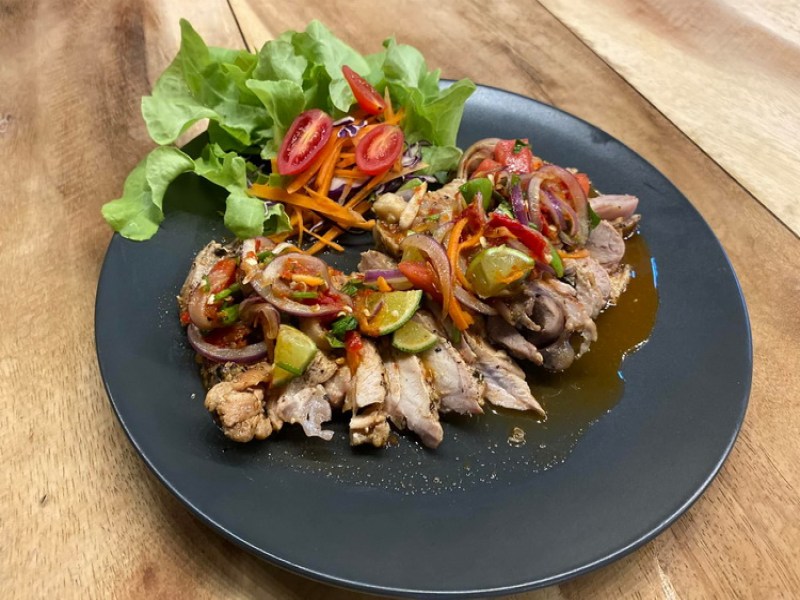 Phuket Steakhouse Cafe 83000 is a quaint eatery situated on the outskirts of Phuket Town, catering to steak enthusiasts. It is conveniently located on Virat Hongyok Street, adjacent to Phuket Public Park, approximately 350 metres from The View Condominium Suangluang. The steakhouse offers an extensive menu including salads, steaks, beverages, and a variety of local Thai dishes. Their beef steak, pepper pork steak, chicken with BBQ sauce, sea bass steak, salmon steak, sausage steak, and other delectable options are highly recommended. The Thai single dish menu is also worth trying, featuring dishes like spicy salad, fried chicken with basil, and curries. Additionally, the dessert options such as salacca in syrup, crispy red rubies in coconut milk, glutinous rice balls in coconut milk, and grass jelly are not to be missed. The overall atmosphere of the cafe is cozy and welcoming for a memorable dining experience.