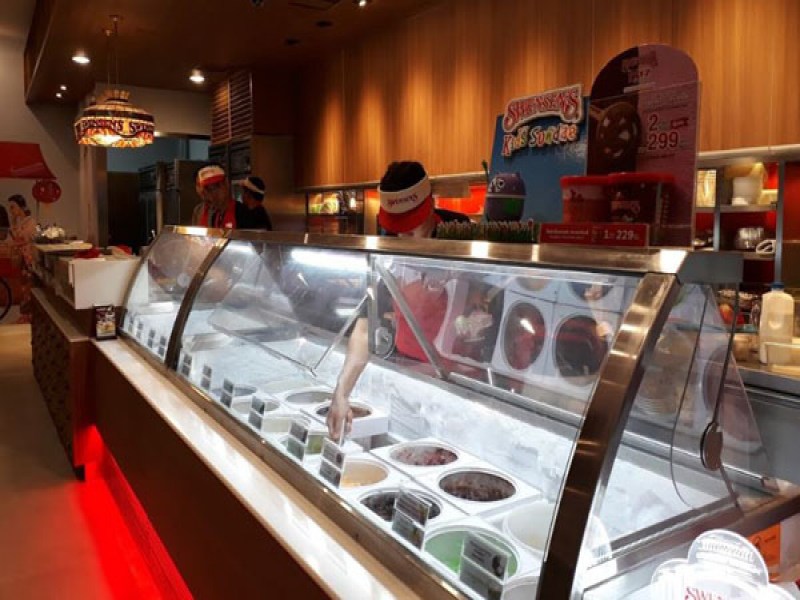 Swensen's at Phuket Town is mainly popular for local people who come for shopping at Robinson Mall and watching movies at Coliseum Paradise Phuket. With its corner location, this air con ice cream shop allows customers to have wider views and more relaxing atmosphere. There are a variety of ice cream flavours especially mango and durian which are seasonal local Thai fruit. Private parking of the shop is not available but customers can park around the corner or along the road nearby.