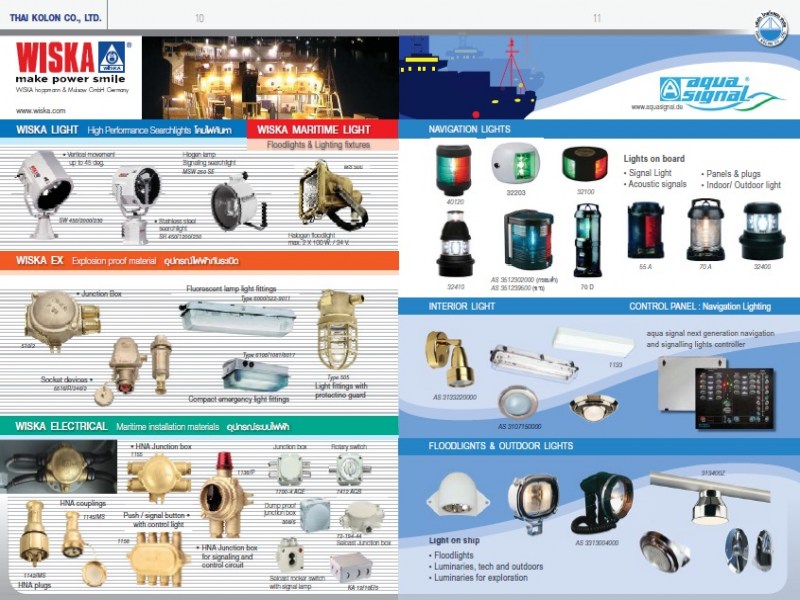 Thai Kolon Company Limited established since 1984, Thai Kolon Company Limited has become a renowned leader among ship machinery and marine equipments’ suppliers. With continuous expansion as well as absolute commitment to the unsurpassed-quality products and services, Thai Kolon business covers, domestically and internationally, not only commercial but also governmental sectors. For this reason, most of the world’s leading manufacturers have confi dence in Thai Kolon’s ability to represent and expand the sale and service networks within the region. In addition to the sales through the dealer network, Thai Kolon has been profi cient in arranging a complete package supply for the client. As a “One-Stop-Service” supplier, we provide the best solution to serve every customer’s requirement at the utmost satisfaction. Last but not least, our skillful staffs are devoted to the business a service beyond your expectation is, thus, our top priority. Thai Kolon is exclusive distributor for well-known manufacturers; MAN, Westerbeke, Sea Recovery, Wartsila, JABSCO, Wiska, Aqua Signal, Hamworthy, Chockfast, Cruisair, Raychem, Hatlapa, Ultrajet, Rockwool, MW Zinc Anodes For rmation and you are interested in products, you can contact our local office and visit.