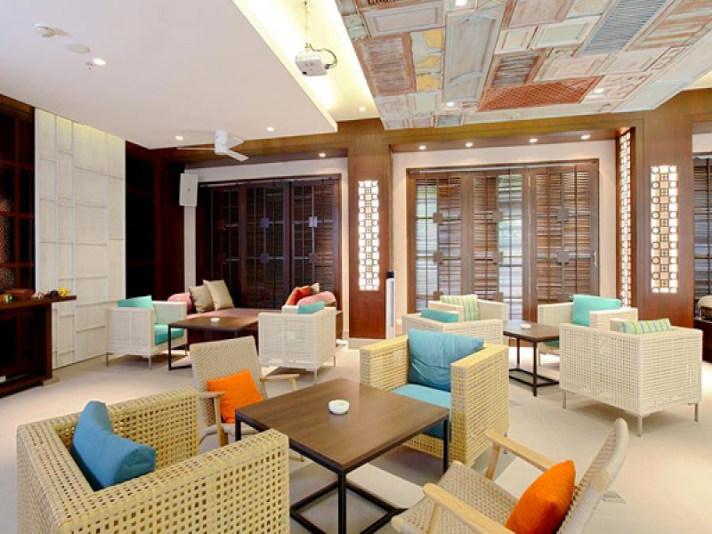 The Bar at Holiday Inn Resort Phuket offers a comfortable indoor and outdoor setting for pre or after-dinner drinks, with a variety of cocktails, coffees, light snacks, and meals available. Guests can enjoy happy hour promotions starting at 5 pm.