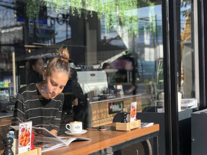 The Coffee Club Boat Avenue is part of the Australian cafe chain in Thailand. The cafe serves a comprehensive range of Western and Thai meals, as well as pastries and bakery products to accompany your coffee, tea, smoothie or fruit drink. This 24-hour branch offers air-conditioned comfort, free WiFi and a small parking. It is located on Bandon-Cherngtalay Road, at the entrance to Boat Avenue, adjacent to the traffic light junction leading to Phuket Laguna.
