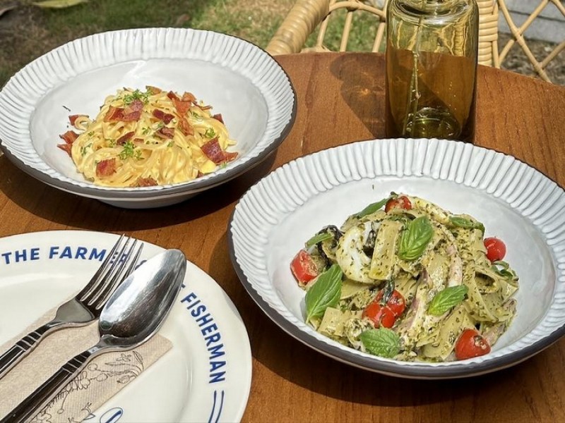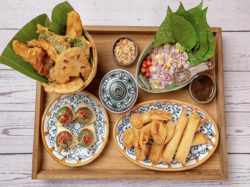 The Farmer and The Fisherman Restaurant at Porto de Phuket, located near Boat Avenue and the Laguna complex, offers Thai-style dishes made with high-quality ingredients sourced from local fishermen. Highlights of the menu include Miang Kham, an ancient Thai snack that blends a variety of flavors and utilizes Thai herbs to stimulate the appetite, and Ma Hor, which is recommended as a palate cleanser with its refreshing pineapple at the end of a meal. You can also indulge in a Ginger Apple Fizz for a burst of freshness, savor the Pineapple Fried Rice, and discover the perfect blend of crisp veggies and smoky salmon in the Fresh Spring Rolls with Smoked Salmon, elevated by Sriracha mayo.
