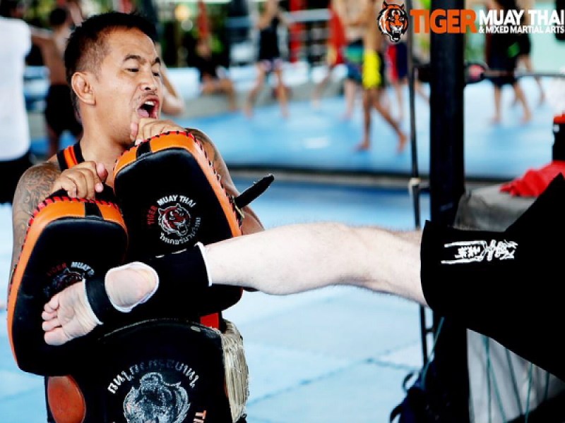 Tiger Muay Thai & MMA training camp is peacefully nestled amidst rural surroundings on Ta-iad street which connects Chao Fah West with Chao Fah East roads. The easier entrance to the camp is via Chao Fah West road, heading to Chalong, after passing Land & House 88 you will find the street on your left hand side before TOT customer service centre. This camp is one of the biggest and very well known Muay Thai training facility in Thailand and the world. Many professional fighters and fitness enthusiasts from around the world come here with the purpose of developing their martial skills and to change their life style. With the winner of the Asian MMA Awards 2013 and winner of the best camp in Thailand for foreigners in 2010 and 2011, Tiger Muay Thai camp guarantees their quality and standard of its services and facilities. Here, you will find the most experienced MMA coaches in Thailand, expert muay Thai trainers and professional team and staff who are all ready to help with every single of your need. This is a one stop muay Thai camp that offers full training, accommodation and an onsite restaurant (Tiger Grill) serving special food for health and ideal for your course.
