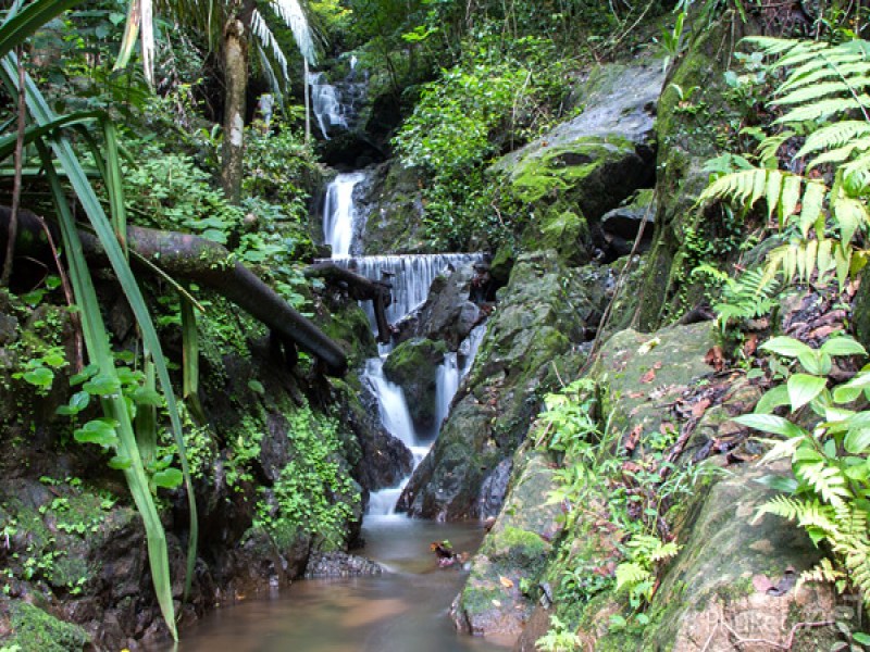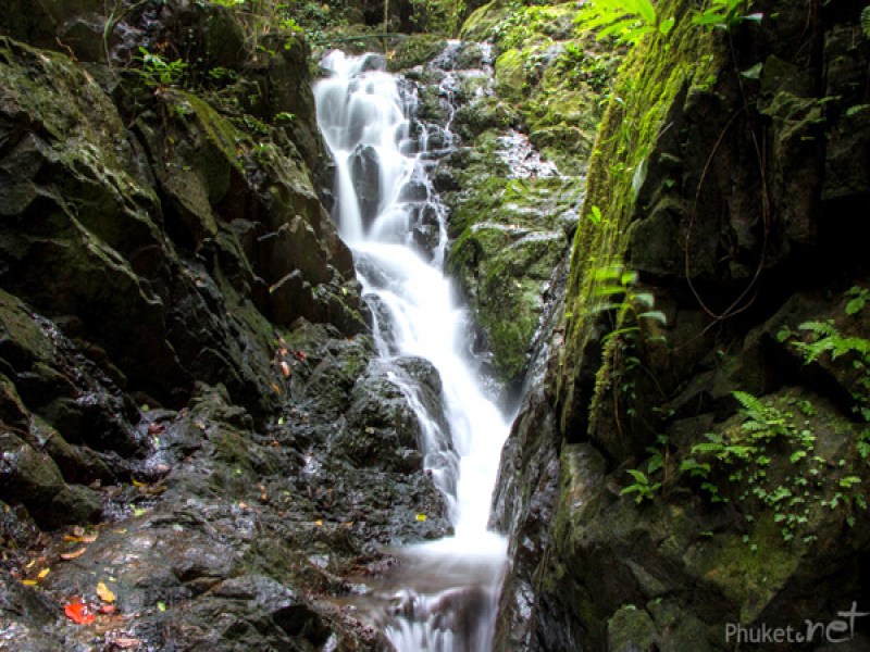 Tonsai Waterfall is smaller, and easier to walk around than Bang Pae Waterfall. It is located just inside the entrance to Khao Phra Thaeo National Park, and it has a fairly easy going 2 to 3 km sign posted walking route, than goes around the back of the waterfall. While walking along the trail, visitors will see unusual tropical plants and flowers and colourful feather, singing birds. It is recommended to take water with you on your walk and wear flat non slip shoes. After your small trek, you can cool off in one of the natural pools or purchase some food and drink items at the small snack type restaurant. There is a car park and a National Park entrance fee is payable. Tonsai Waterfall is located towards the Northern part of Phuket Island in Thalang. If driving towards Phuket Airport on the main Airpport Road (Thepkasattri Road, highway 402) at the Thalang traffic light controlled crossroads turn right ( there is a sigh for Tonsai Waterfall) after around a 3 km drive you will come to the entrance to Khao Phra Thaeo National Park, where the waterfall is located.