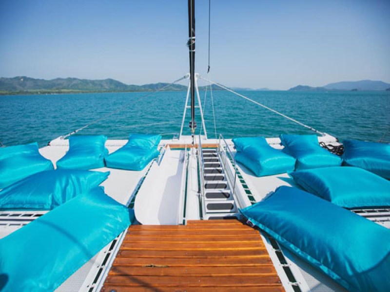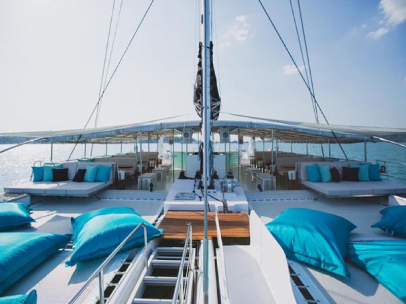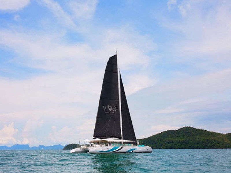 Vibe Boat Club’s concept is a private boat party at sea on a 78ft Catamaran featuring sun loungers, daybeds, cabanas and water slide in a stylish beach club atmosphere. This half-day boat party disembarks from Yacht Haven Marina in Ao Por and takes guests along the Phang Nga Bay to Koh Yao Yai and Koh Phanak as their sailing destinations. On board, a bar serves a variety of finger food, from fusion Thai to International delights. The drinks menu lists a selection of beers, cocktails and bubbles. The DJs will entertain guests throughout a trip with different genres of music, from club mixes to chart-toppers. The boat leaves at 12. 30 pm and returns to Yacht Haven Marina at 7. 00 pm.