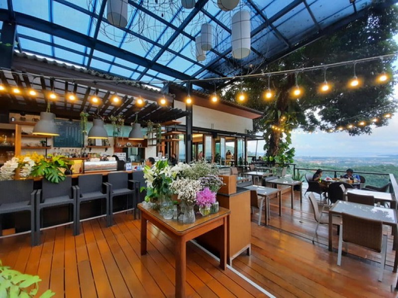 View Cafe at Phuket offers a diverse menu of Thai and Western dishes, along with a selection of beverages, in a picturesque hilltop setting with indoor and outdoor dining options. Located just a short drive from Island Safari Phuket.