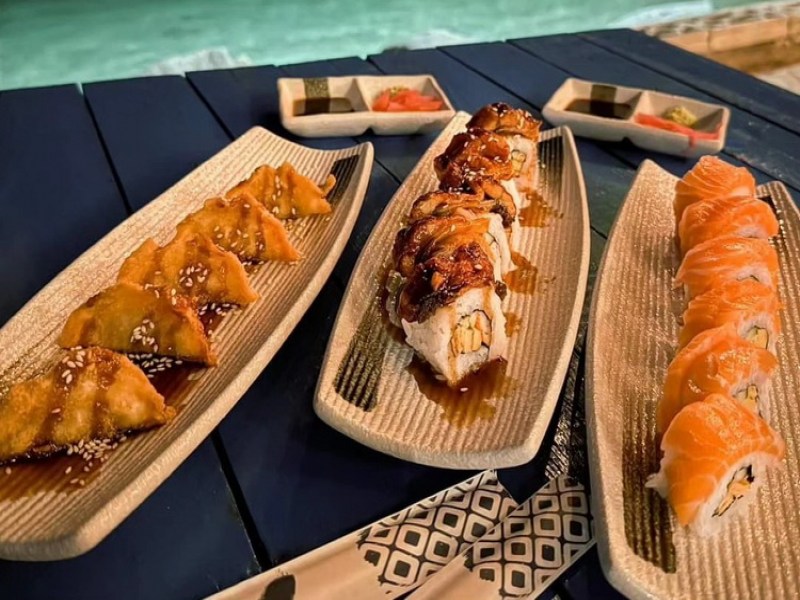 Wabisabi Sushi Hut is a unique Japanese food truck located on Bangtao Beach at Hugo Hub Phuket, offering a diverse menu of highly recommended sushi dishes and cocktails for beachgoers looking for a taste of Japan.