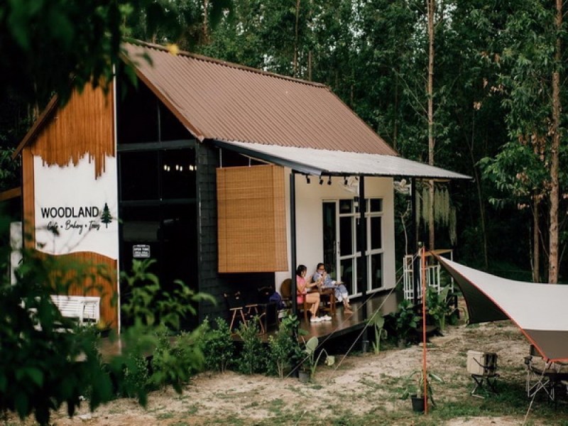 Experience a charming Woodland Cafe with indoor and outdoor seating options, serving a variety of delicious drinks, cakes, and Thai food in a serene atmosphere near Cherng Talay Temple.