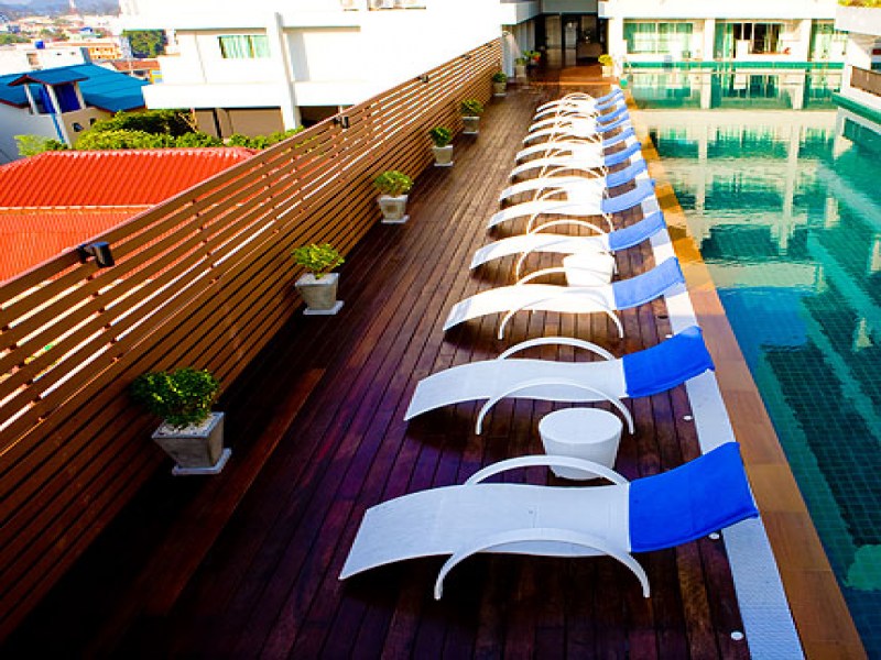 A modern boutique hotel in Phuket offering spacious rooms with self-catering facilities, two outdoor pools, a gym, and a free shuttle to the beach and shopping areas. Located in a tranquil hillside location within walking distance to the beach, shops, and vibrant night entertainment venues.
