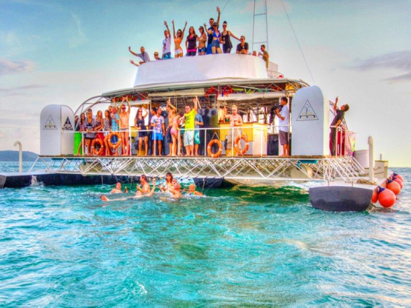 Phuket Party Boat offers a one-of-a-kind trimaran for events and party cruises on the Andaman Sea, featuring two levels with a dancefloor, bar, and outdoor seating area. With 140 sqm of space, visitors can enjoy a unique party experience with stunning views and all necessary facilities provided.