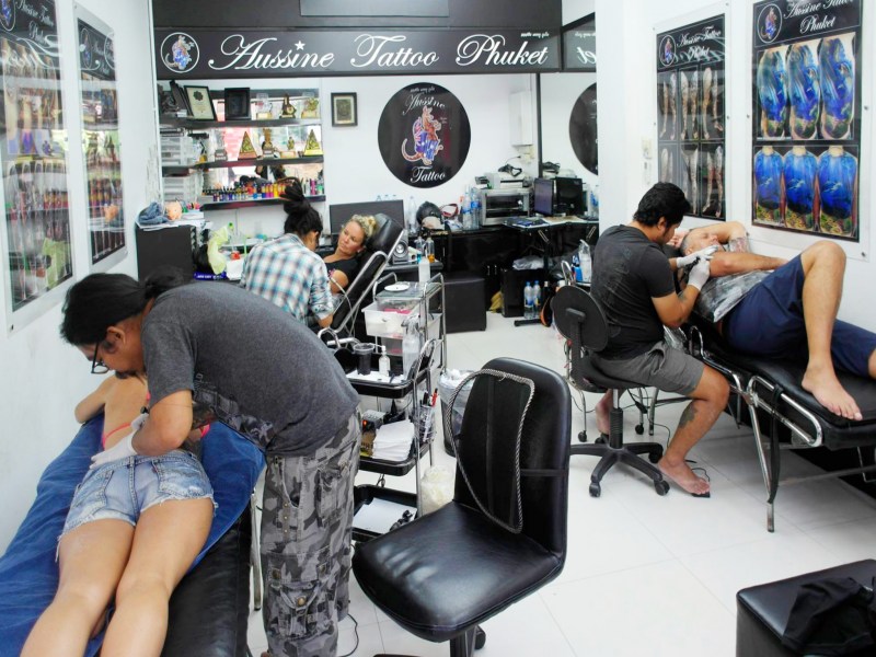 Aussine Tattoo Studio Phuket is a top tattoo shop in Patong known for magnificent designs, skilled artists, and warm service. They offer custom designs in a variety of styles and strictly adhere to international safety and hygiene standards.