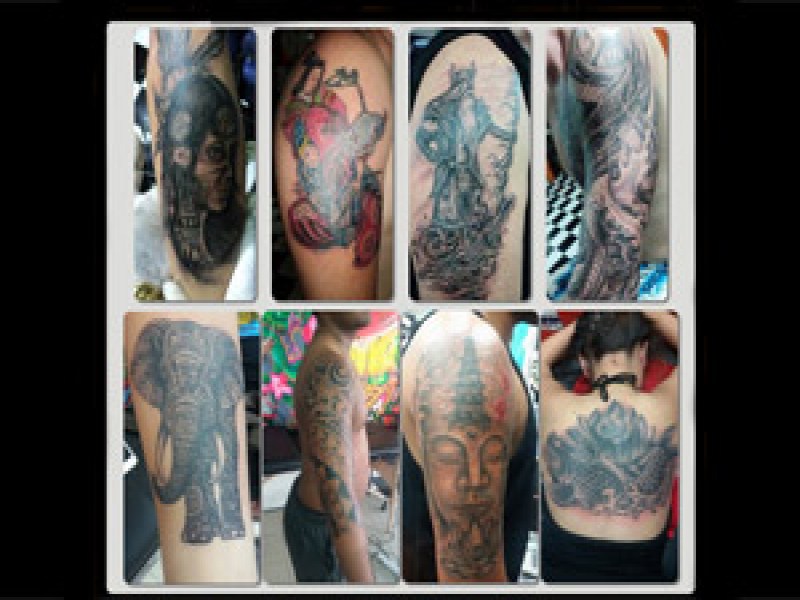 Bless You Tattoo Studio offers traditional Sak Yant tattoos using a stick pock method, blessed in a Thai ceremony, along with machine tattoos in a modern and hygienic studio near Patong.