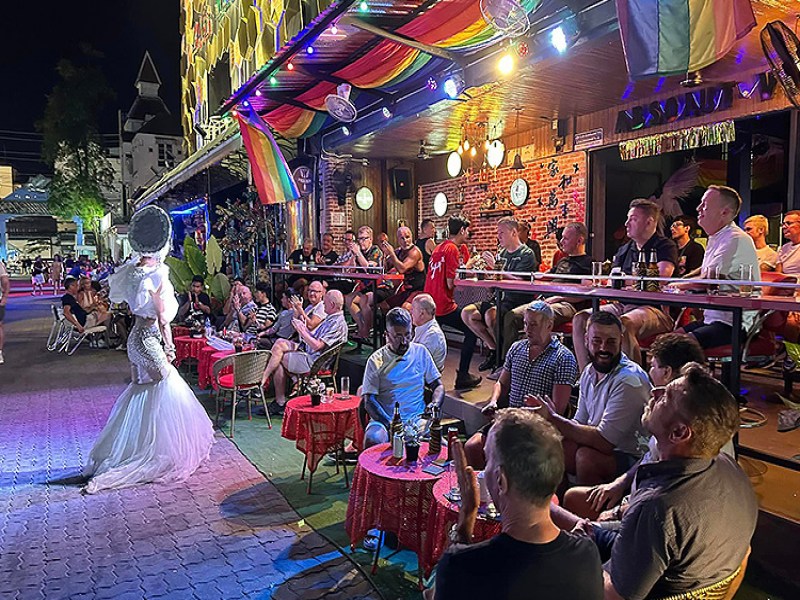 G-Club Patong is a popular gay bar and club in the heart of Patong's Paradise Complex, offering an outdoor terrace for relaxing and people-watching, as well as an indoor area for late-night drinking, dancing, and cabaret shows.