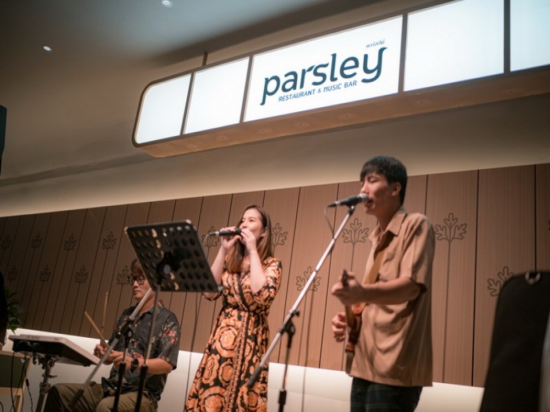 Parsley Restaurant & Music Bar offers a unique blend of Thai and international cuisine in a cozy, modern setting with a nostalgic 90s music theme. Located near Thaihua School, the diverse menu includes dishes like Spicy Salmon Salad and Grilled Ribeye Steak, creating a warm and inviting atmosphere for casual dining or a night out.
