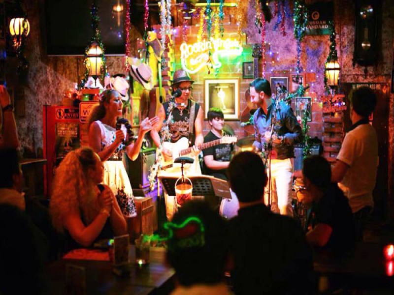 The Irish Times Pub in Phuket offers a traditional Irish atmosphere with a wide range of classic Western dishes, a variety of beers, whiskeys, and regular events such as quiz nights and live music.