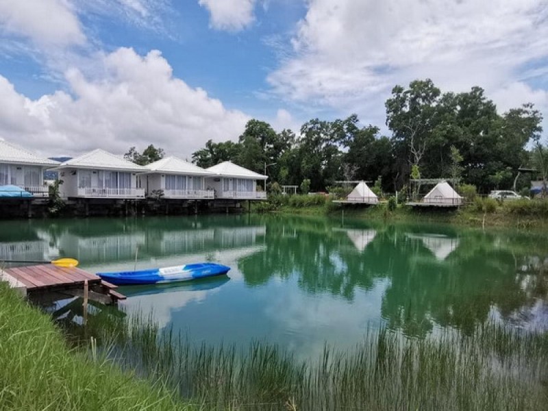 Wide View Resort Cafe offers modern accommodations in overwater bungalows and stylish tents around a peaceful freshwater lake in Ban Don, Cherng Talay. Guests can enjoy a variety of recommended dishes amidst rustic surroundings, making it an ideal destination for those seeking a serene rural lifestyle.
