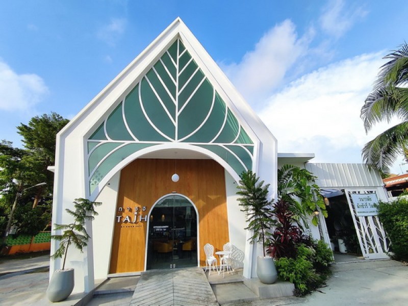 TAJH by Good Cafe offers Indian-inspired architecture and a peaceful setting near Chalong Temple, serving a variety of mouthwatering dishes and cakes, with highly recommended signature items including curry puff, Phuket style fried pork, and traditional fried rice. Don't miss their special drink, Banana Lassi or Indian Yogurt.