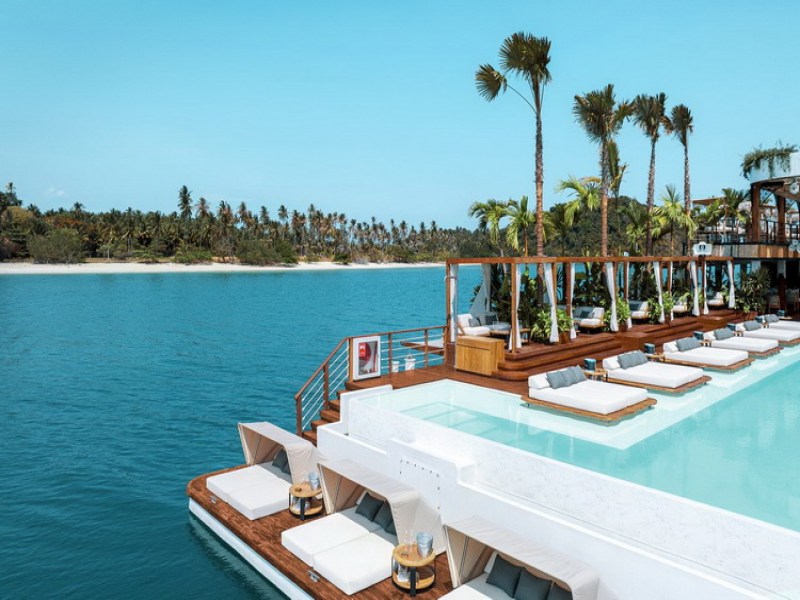 Yona Beach Club is the first floating club in Phuket, offering a fun and adventurous experience with a 22-meter infinity pool, private cabanas, top-notch restaurant, and panoramic ocean views. Guests can enjoy a diverse cuisine and premium drink menu while receiving attentive and welcoming service from the staff.