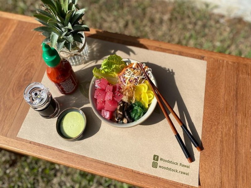 Woodstock is a garden cafe and bar in Rawai that offers mainly healthy food options like fresh fruit smoothies, poke bowls, sushi rolls, and breakfast items. They also serve a variety of drinks including beers, wine, cocktails, and mocktails, and are open for breakfast, lunch, and dinner.