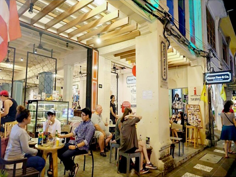 ELLE Cafe Phuket offers a cozy atmosphere and specializes in serving fresh coffee, chocolate drinks, and popular freshly baked croissants, including their salted caramel with mixed nut variety. Located in Old Phuket Town, the cafe's industrial design and small outdoor courtyard make it a unique spot for visitors to enjoy a relaxing break.