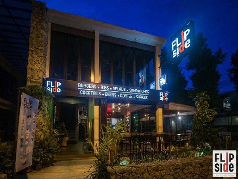 The Flame is a modern open kitchen restaurant in Cherngtalay offering wood fired pizzas, ribs, and spit roasted chickens with unique flavor options. They also have a branch at Sino@ByPass on Bangyai Road.