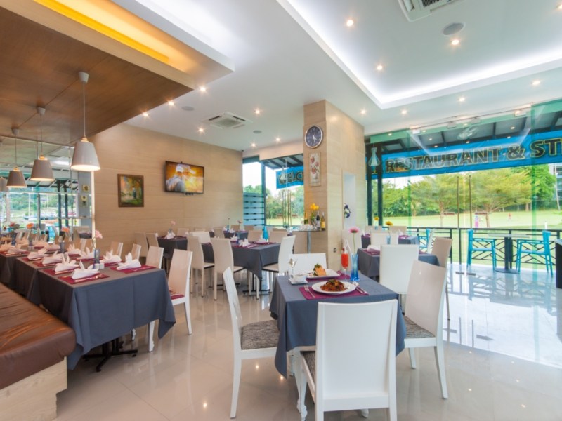 The restaurant at Phuket Country Golf Club offers a diverse menu of international and Thai cuisine, including value-for-money steaks. Guests can enjoy meals and beverages before or after a round of golf, making it a convenient and enjoyable dining option for golfers.