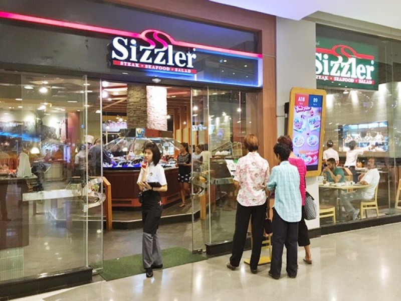 Sizzler @Central Festival Phuket offers a wide range of steak, seafood, and chicken dishes, along with a salad bar featuring fresh fruits and vegetables and a variety of sauces. Signature items include Sizzling Strip Loin and BBQ Pork Spareribs, with options for hamburgers and a Kid's menu available. Located on the 3rd floor near SFX Coliseum Cinema.