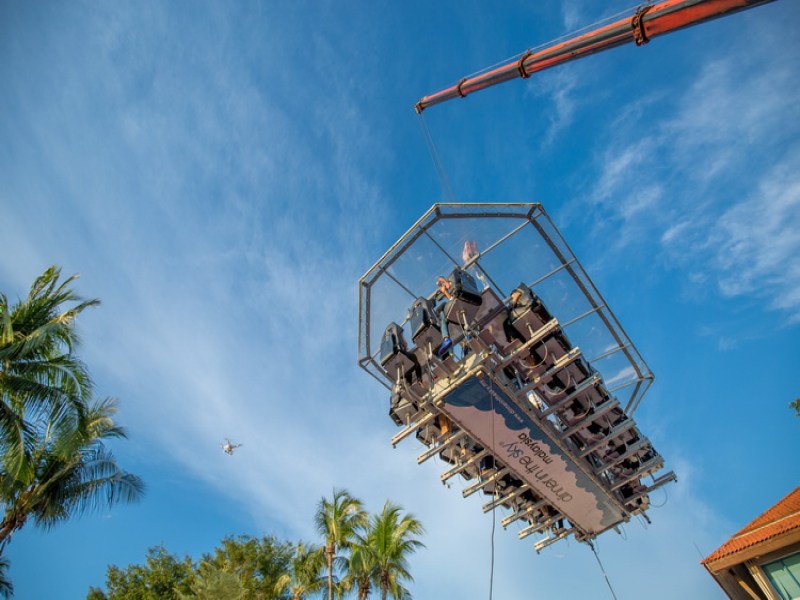Experience a unique dining adventure in the sky with Dinner in the Sky Phuket, where guests enjoy exquisite dishes at a height of 50 meters above Karon Beach. This dining experience, originating from Belgium, uses a crane to hoist guests and staff into the air, offering a breathtaking view and unforgettable experience.