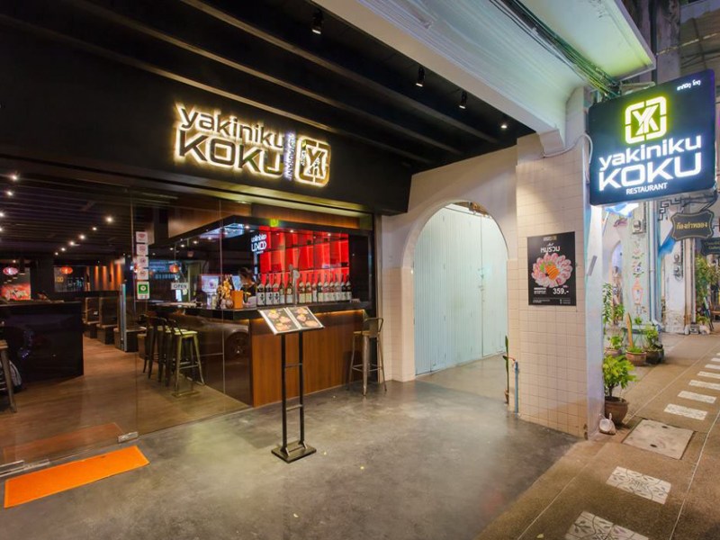 Shokun Yakiniku is a Japanese restaurant in Phuket Town offering premium meat and fish cuts, including wagyu beef and shellfish, for grill-it-yourself dining in a sleek black-themed interior.